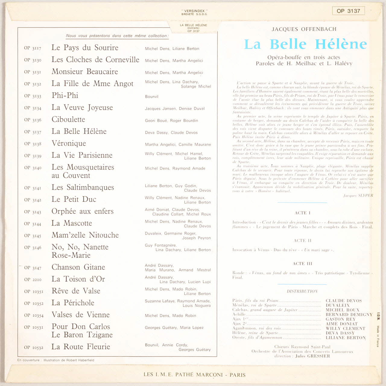 De :choeurs et solistes / dans le rôle de Pâris / dans le rôle d'Hélène / dans le rôle de Ménélas / dans le rôle de Calchas