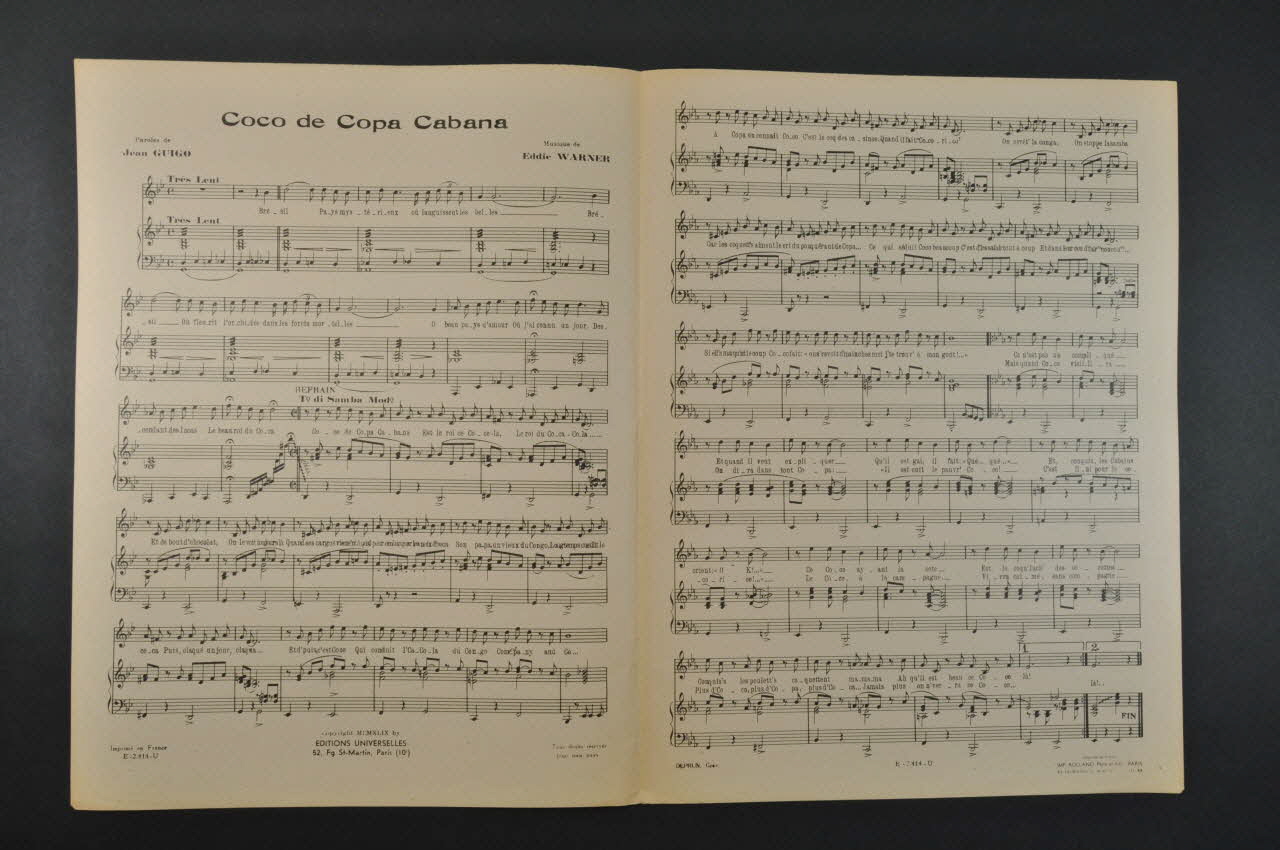 Les inscriptions renseignent le titre de la chanson, le nom des auteurs, de l'artiste et de l'éditeur. A l'intérieur, partitions et paroles de la chanson. Au dos, le logo de l?éditeur.Matériaux et techniques