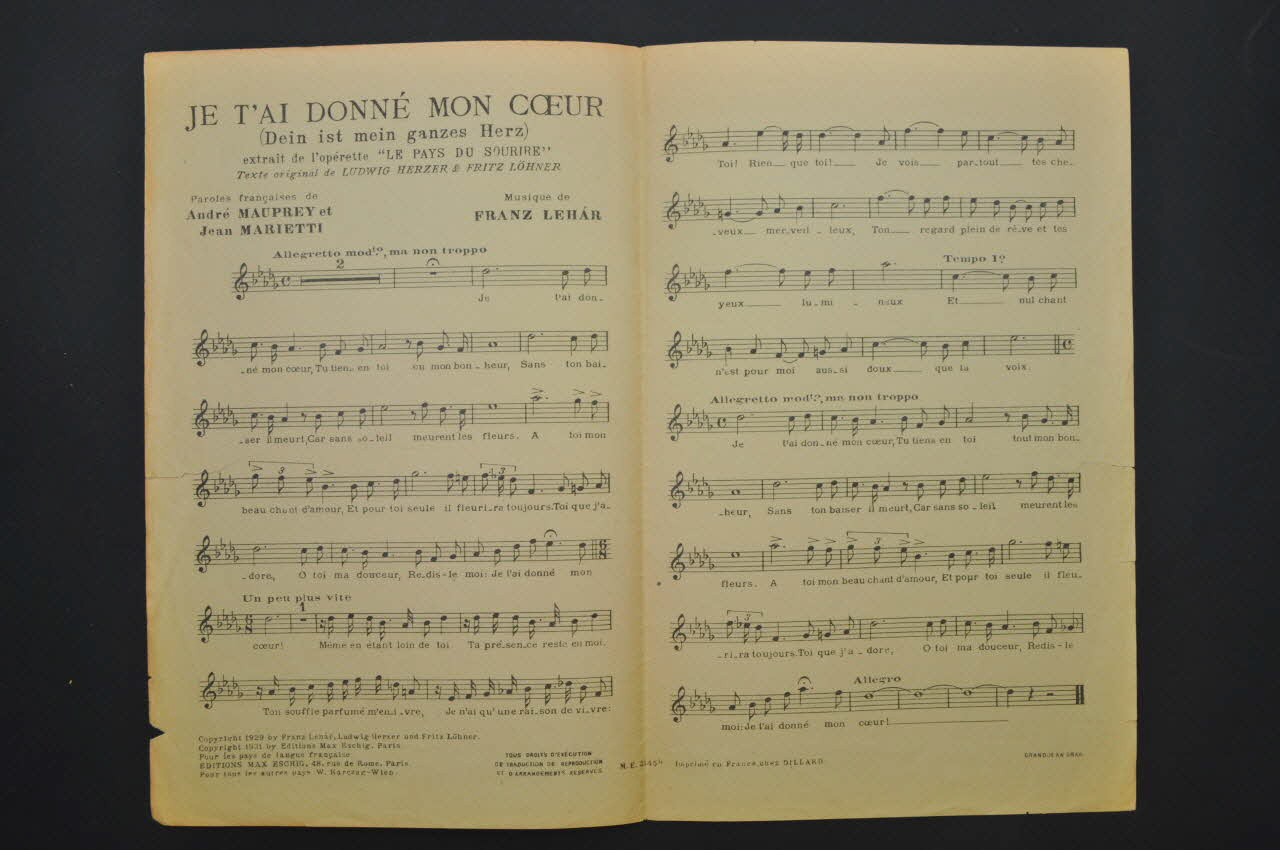 chanson, petit format, partition de musique, Je t'ai donné mon coeur