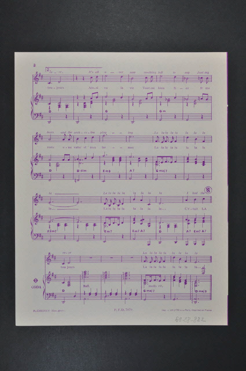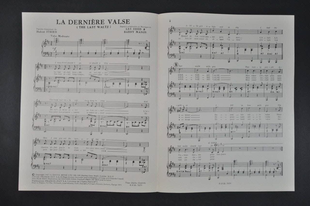 Des inscriptions renseignent le titre, les auteurs, les exécutants et l'éditeur. A l'intérieur, partition et paroles de la chanson. Au dos, liste d'autres partitions publiées par l'éditeur.Matériaux et techniques