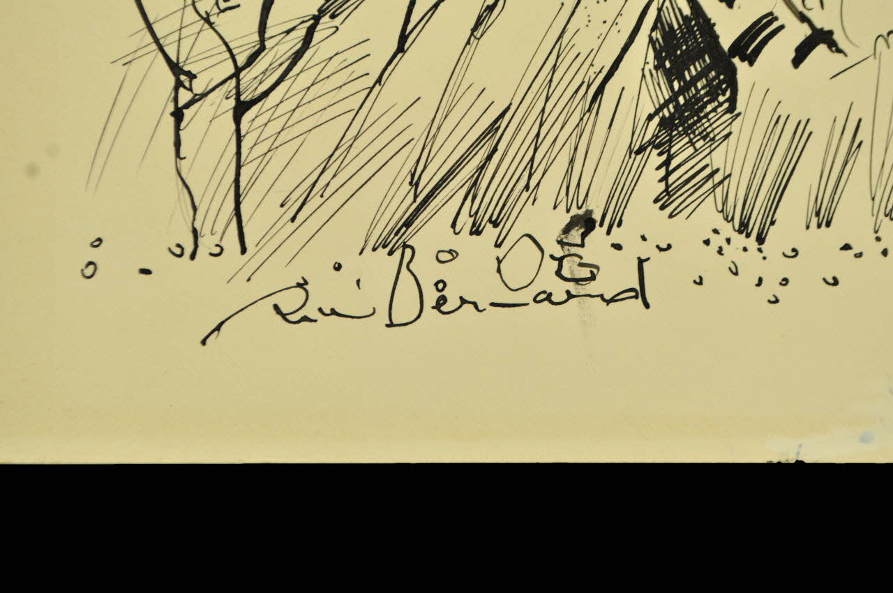 Dessin à l'encre de Chine sur papier de forme rectangulaire.