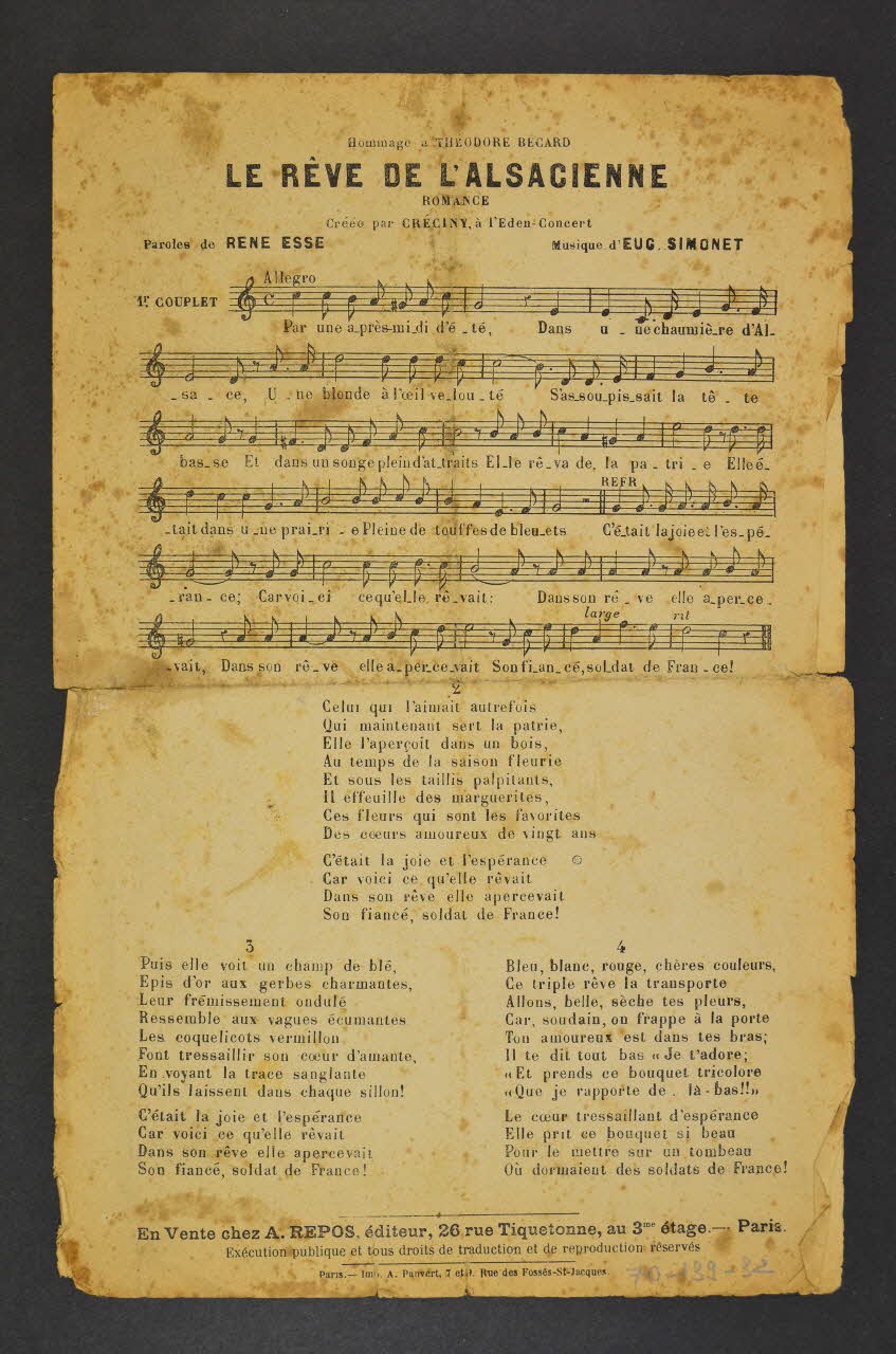 partition de musique, chanson, petit format, Le Rêve de l'Alsacienne