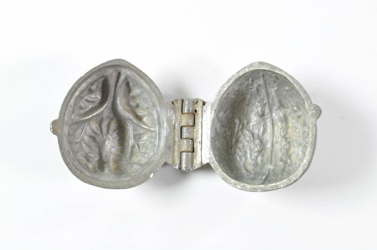 Il s'agit d'un moule bivalve de confiseur. Il est réalisé en étain et comporte un assemblage par charnières.