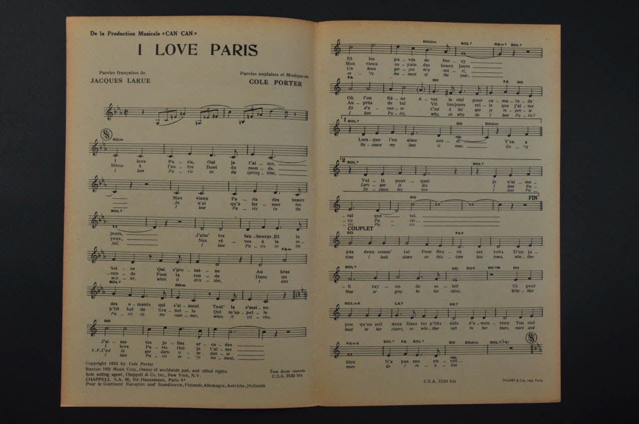 chanson, partition de musique, petit format, I love Paris