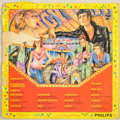 (Johnny Hallyday // 1961 - Viens danser le twist // 1963 - T'as qu'seize ans // // The Golden Stars & Johnny Hallyday // 1962 - Last Night // // Trumpet Boy // 1959 - T'aimer follement // // Rocky Volcano // 1961 - 24 mille baisers // 1961 - Belle maman // // Teddy Raye // 1961 - Jupon bleu, jupon vert // 1961 - Twist stop // // Matt Collins // 1963 - En écoutant la pluie // 1963 - Il faut choisir // // Les Mercenaires // 1962 - Moi je pense encore à toi // 1962 - Les Mercenaires de l'amour // // Long Chris et les Daltons // 1962 - Je reviendrai // 1962 - Comme l'été dernier // // Sheila // 1963 - Première surprise partie // 1963 - L'école est finie // // Claude François // 1962 - Belles, belles, belles // 1962 - Dis-lui // // Vic Laurens // 1963 - Je ne peux pas t'oublier // 1963 - Quand je te suis des yeux // // Les Gam's // 1963 - Il a le truc // 1963 - Oui les filles // // Lucky Blondo // 1962 - Dis-moi oui // 1962 - Sheila // // Gabriel Dalar // 1958 - Viens // 1958 -)Décor
