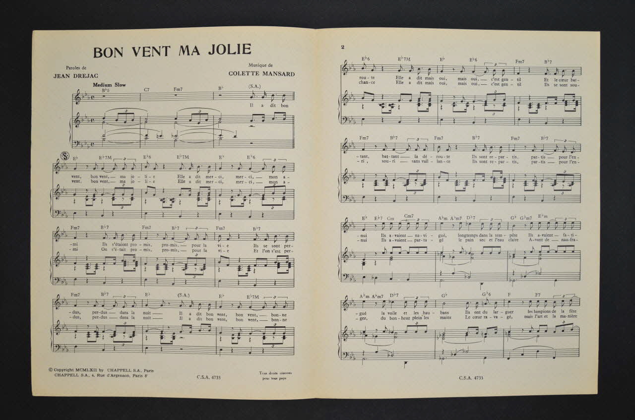 partition de musique, chanson, petit format, Bon vent ma jolie