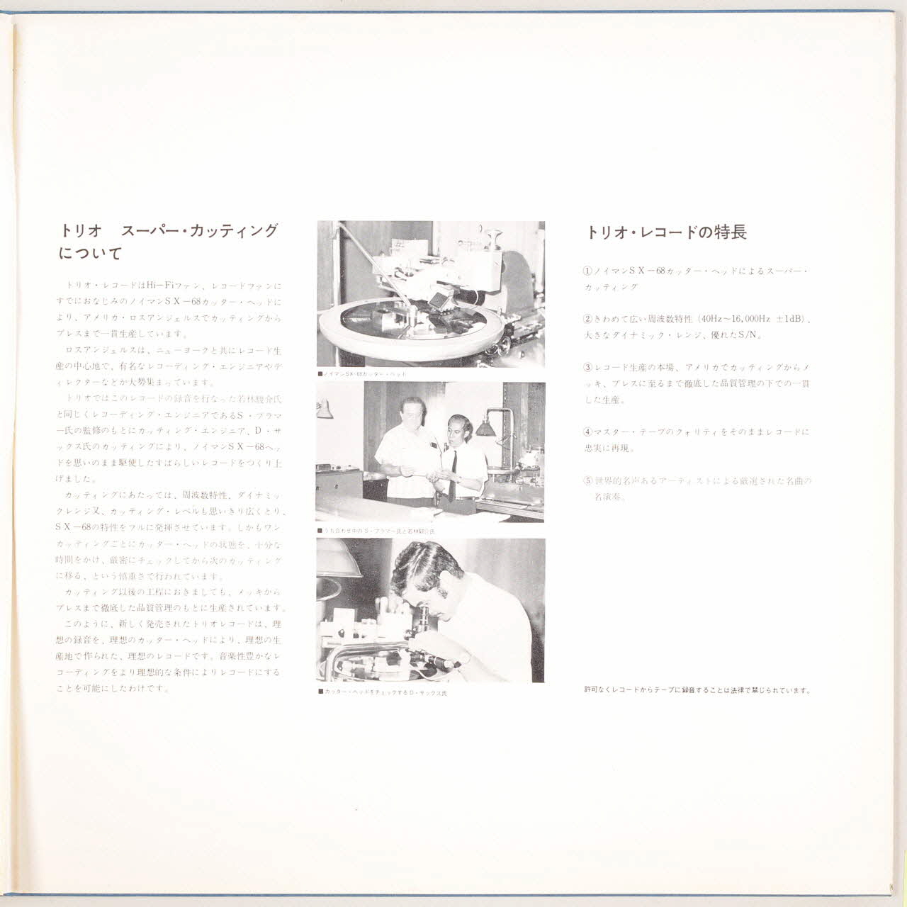 La pochette de couleur bleue porte sur le recto des inscriptions gravées sur un support en aluminium, collé sur le carton et sur le verso des inscriptions imprimées de couleur argentée. L'intérieur de la pochette présente plusieurs pages imprimées de photographies accompagnées d'inscriptions en caractères asiatiques.