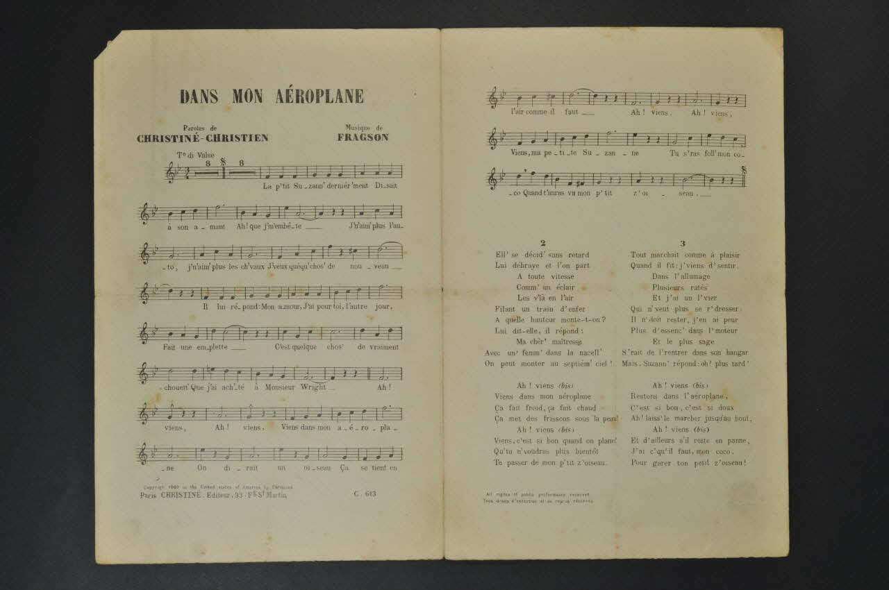 chanson, partition de musique, petit format, Dans mon aéroplane