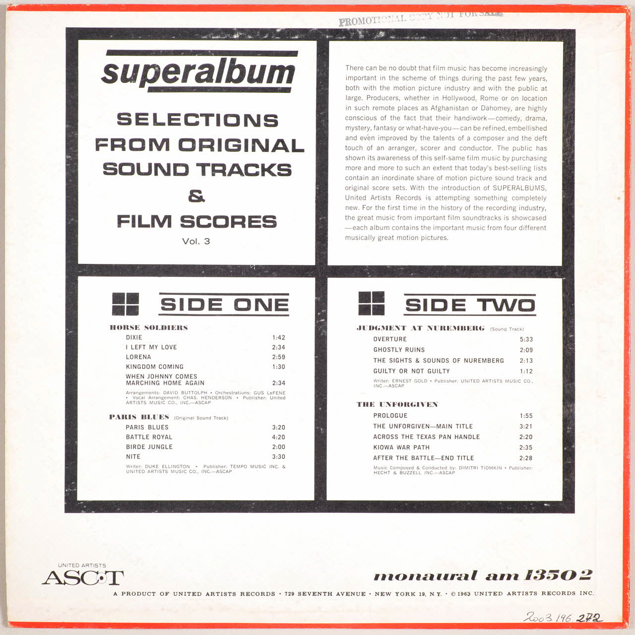 disque 33 tours, Overture, Paris blues, Dixie, Across the Texas pan handle, Kiowa war path, The sights and sounds of Nuremberg, The Unforgiven, When Johnny comes marching home again, I left my love, Birde jungle, Ghostly ruins, Prologue, Guilty or not guilty, Battle royal, Lorena, Nite, After the battle, Kingdom coming