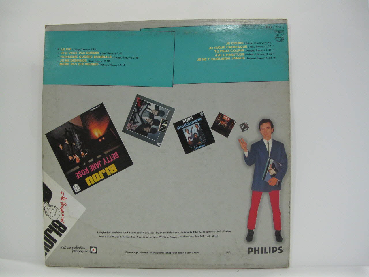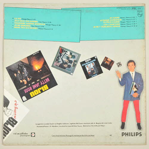 9101 272 (référence de l'album)face A : // 1. Le kid // 2. Je n'veux pas dormir // 3. Troisième guerre mondiale // 4. Je me demande // 5. Meme pas dix heures // // face B : // 1. Je cours // 2. Attaque cardiaque // 3. Tu peux courir // 4. J'ai l'habitude // 5. Je ne t'oublierai jamais (titre des chansons // 10 titres)Décor