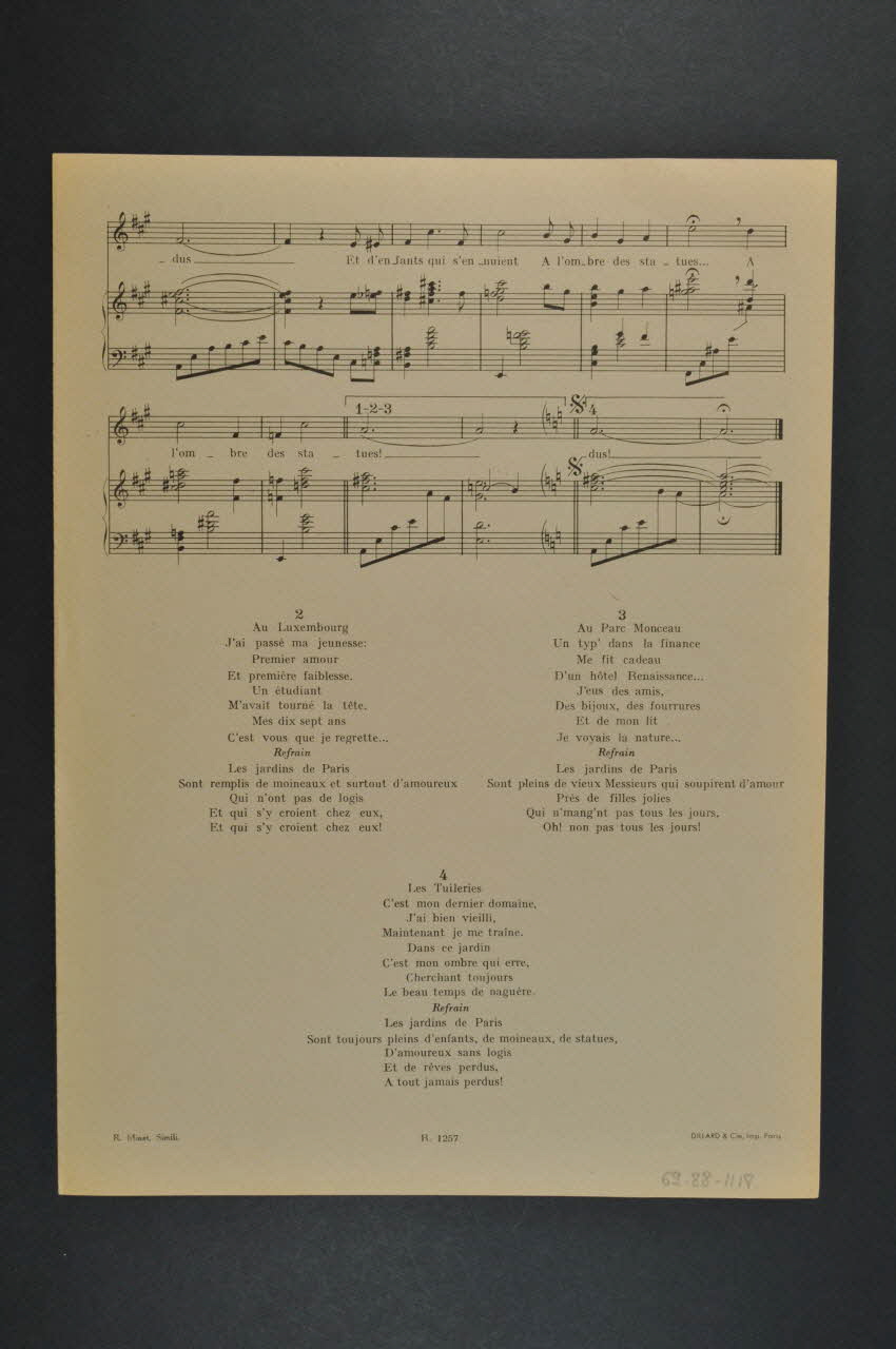 partition de musique, chanson, Les jardins de Paris