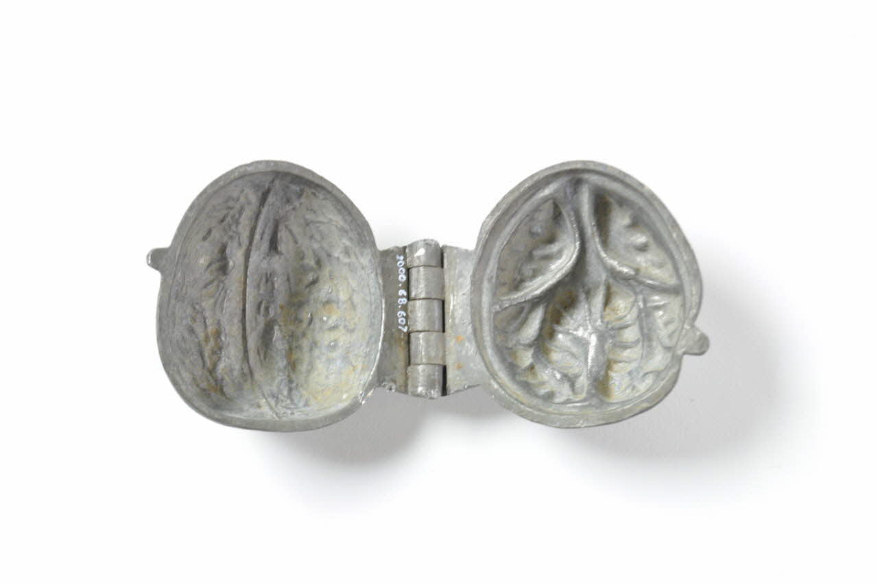 Il s'agit d'un moule bivalve de confiseur. Il est réalisé en étain et comporte un assemblage par charnières.