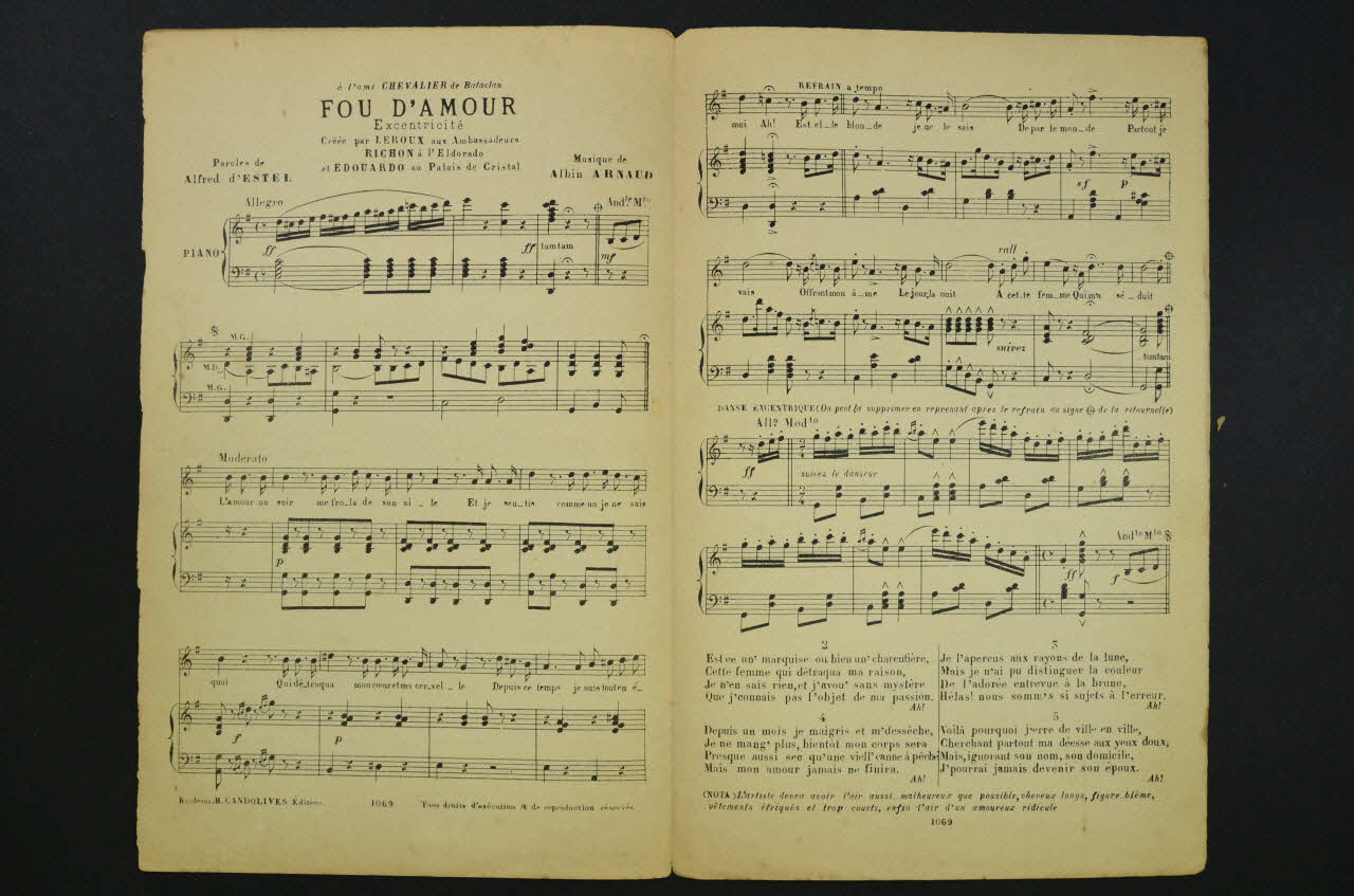 chanson, petit format, partition de musique, Fou d'amour