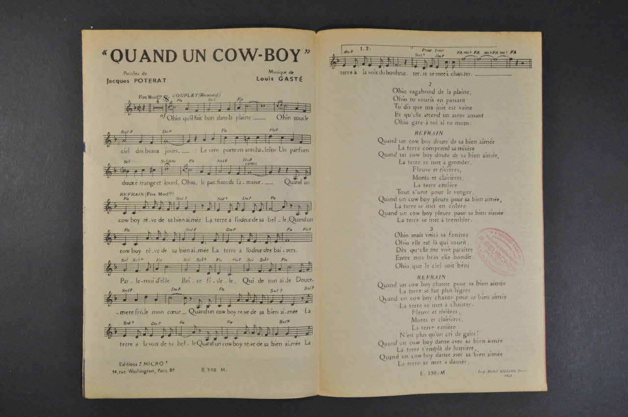 partition de musique, chanson, petit format, Quand un cow-boy