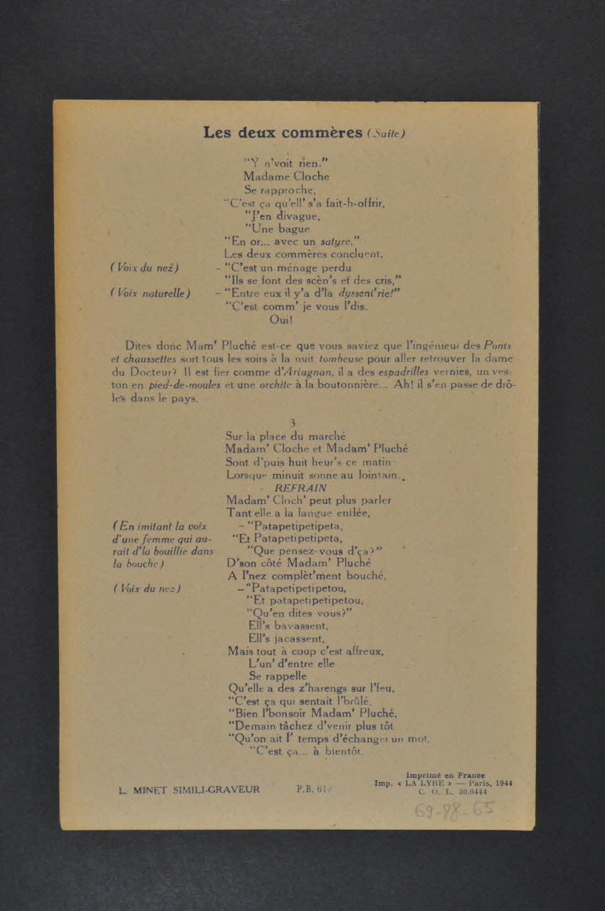 partition de musique, chanson, petit format, Les deux commères