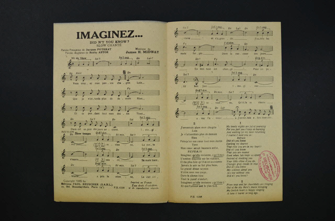 chanson, partition de musique, petit format, Imaginez