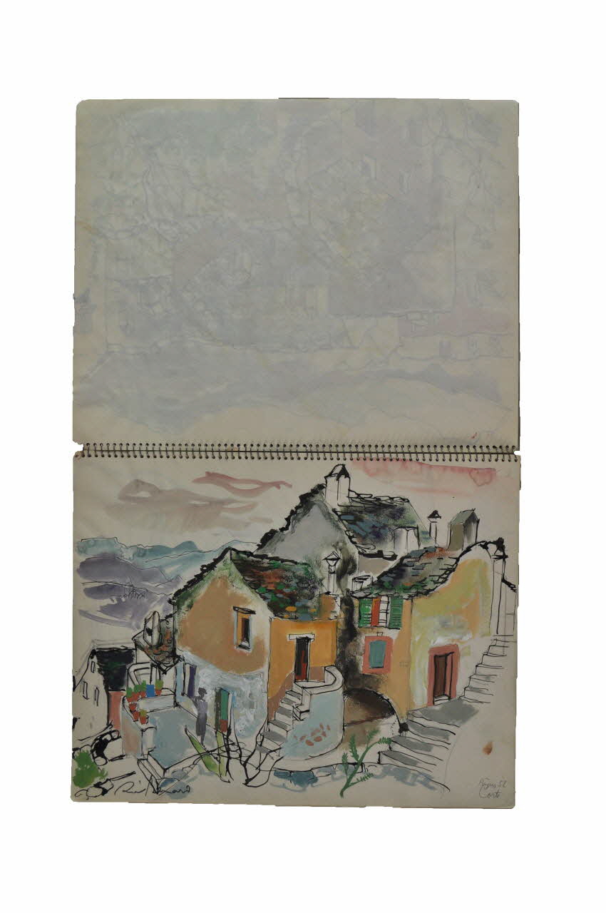 La couverture est soupple et cartonnée et la quatrième de couverture est rigide et cartonnée. Il contient soixantes-dix-sept pages dont dix-huit sont illustrées. Les représentations sont essentiellement des paysages vivement colorés à la gouache, pris sur le motif, ainsi que quelques détails croqués à l'encre de Chine ou au crayon graphite.Inscriptions