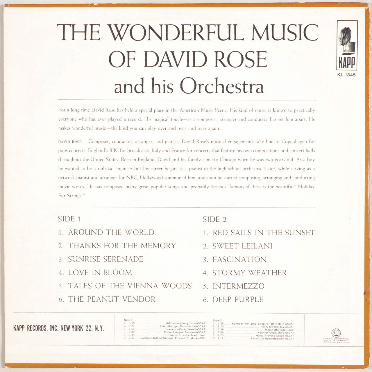 - Titre : The wonderful music of David Rose and his Orchestra