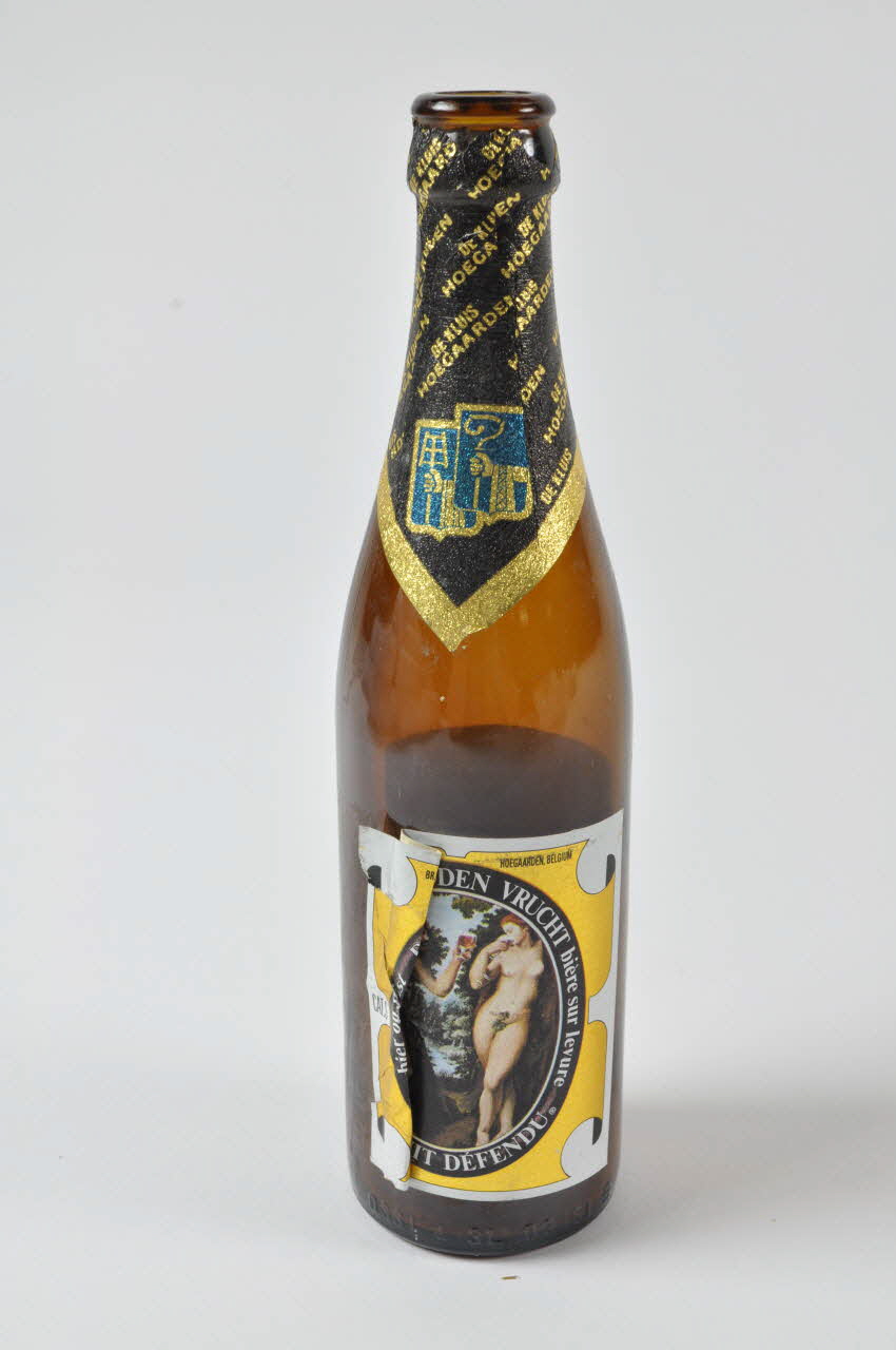 DE KLUIS / HOEGAARDEN (inscription répétée plusieurs fois.), colBR HOEGAARDEN - 3320 / HOEGAARDEN, BELGIUM / bière sur levure / LE FRUIT DEFENDU (Quand traduction en flamand sur la bouteille, seul le français est transcrit.), faceÉtiquette imprimée