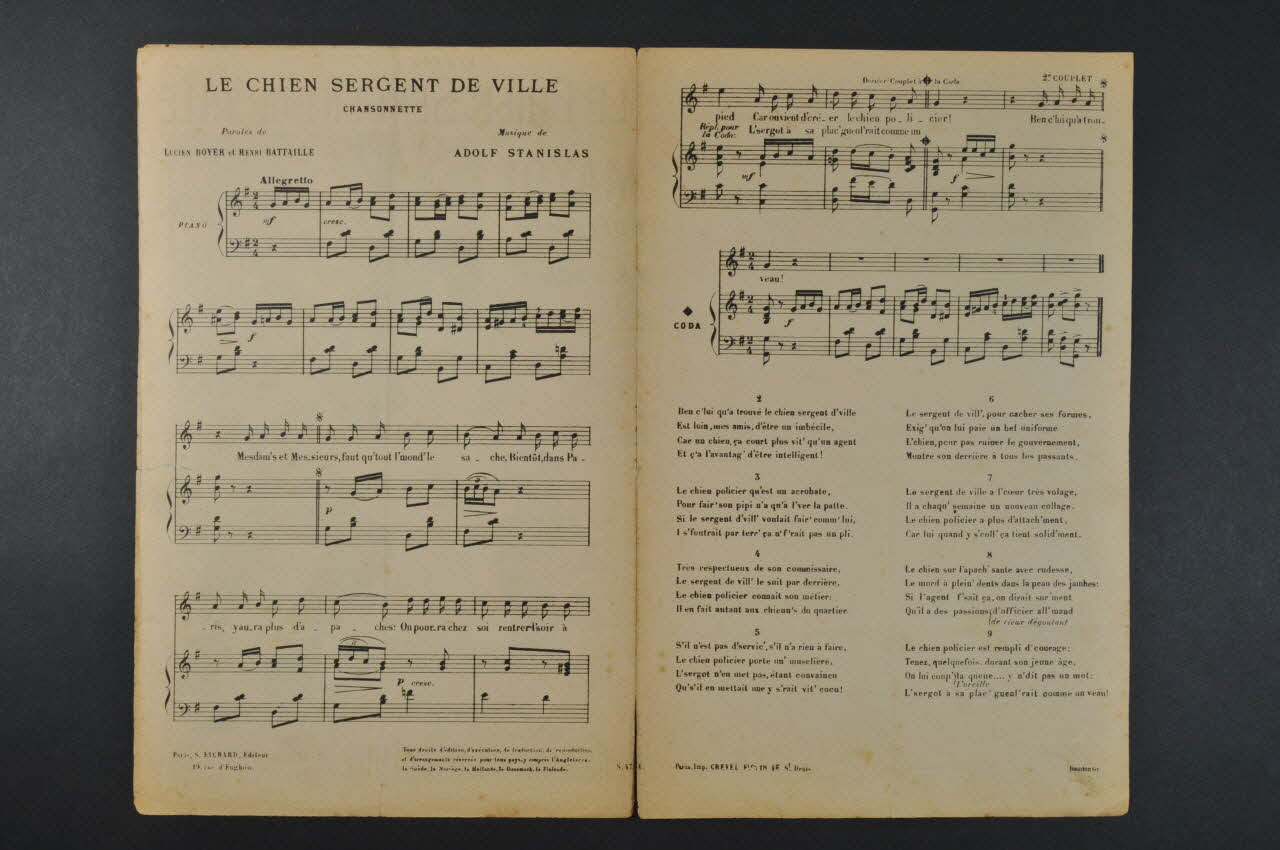 partition de musique, chanson, petit format, Le chien sergent de ville