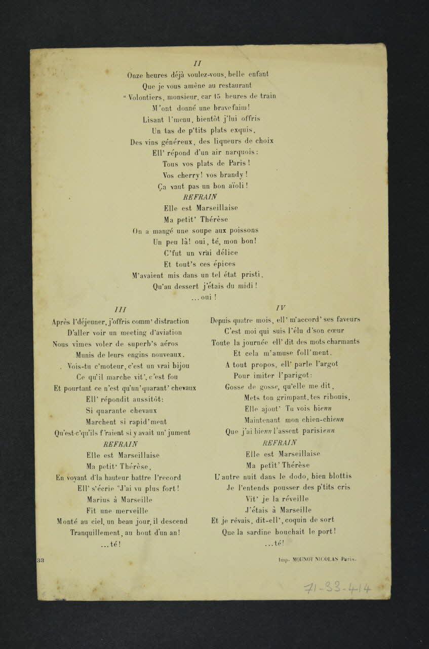 chanson, partition de musique, petit format, Elle est maseillaise