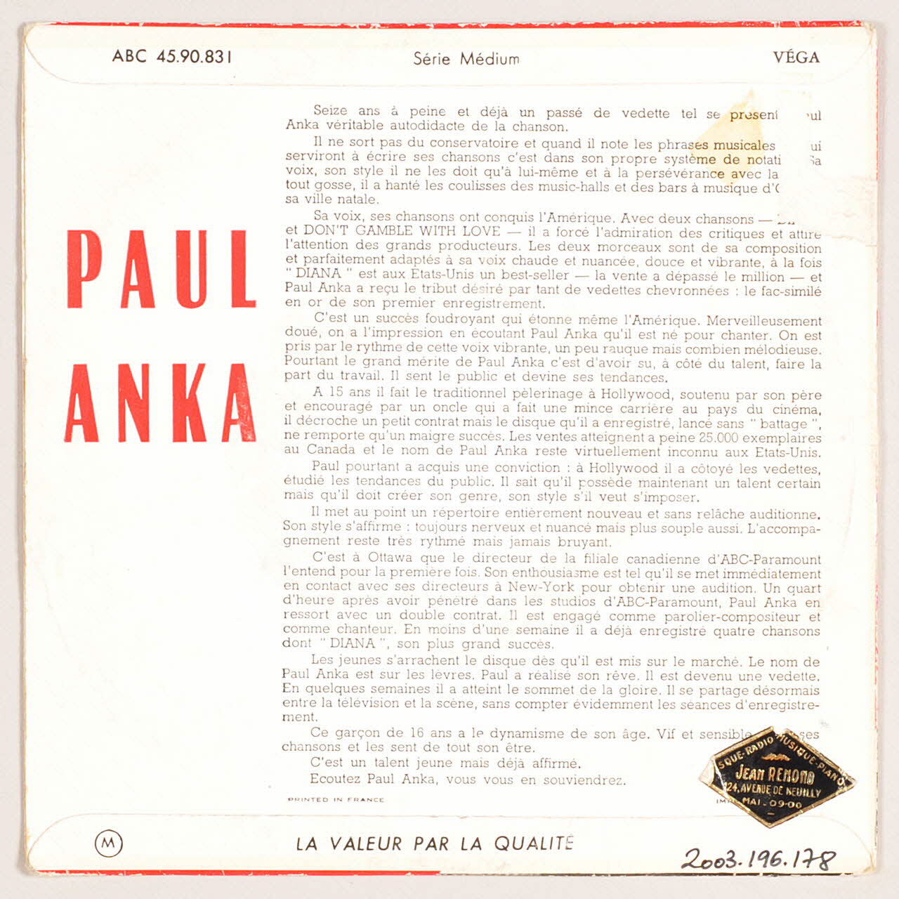 C.A (sur l'étiquette en papier du vinyle), recto-versoMatériaux et techniques