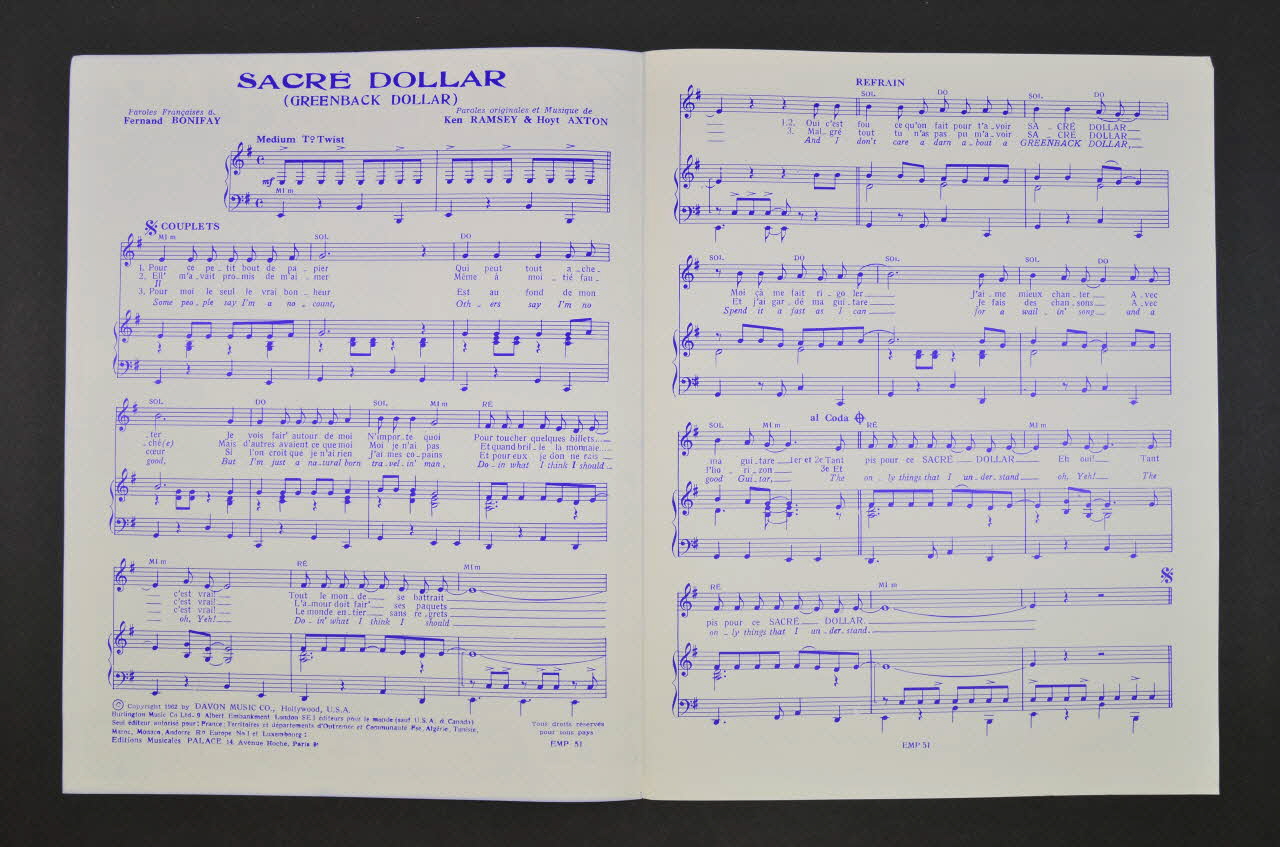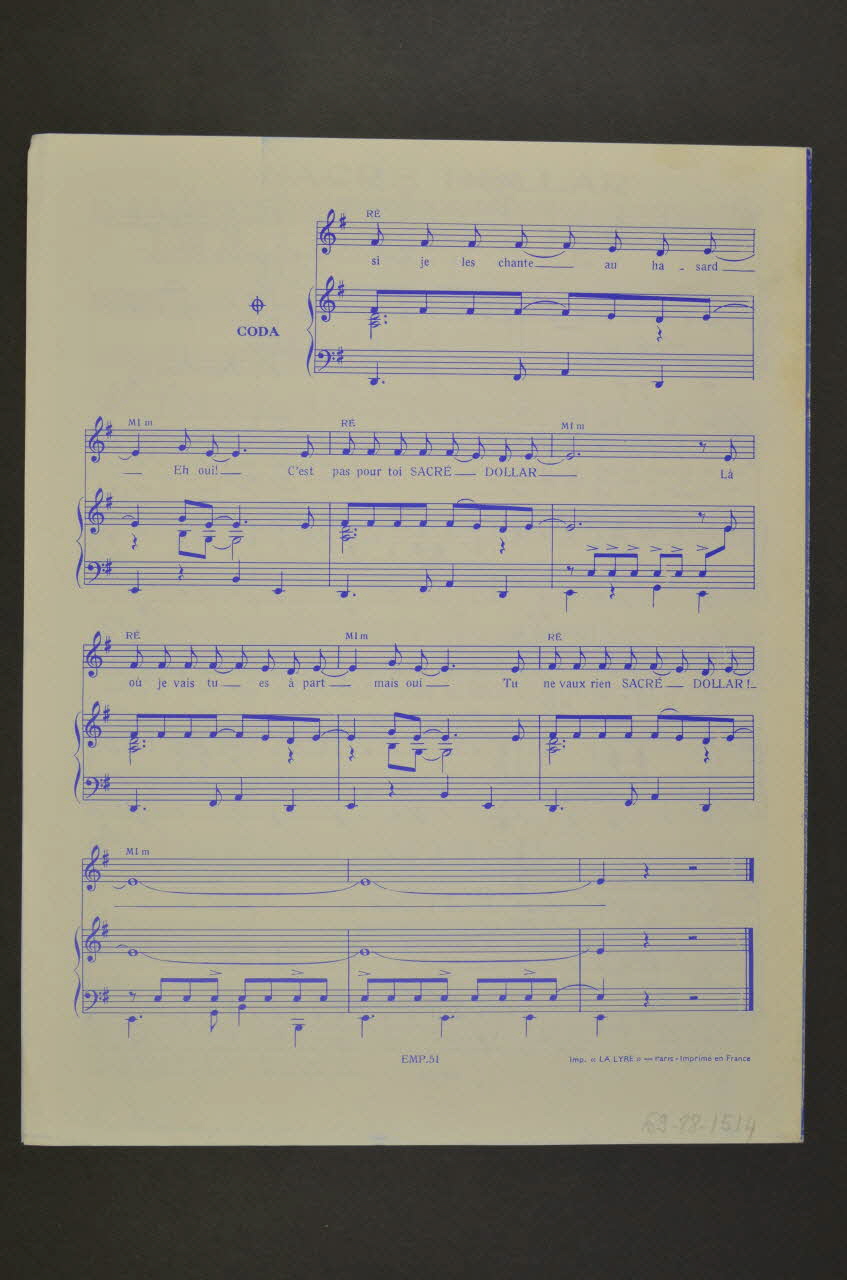 partition de musique, chanson, petit format, Sacré dollar
