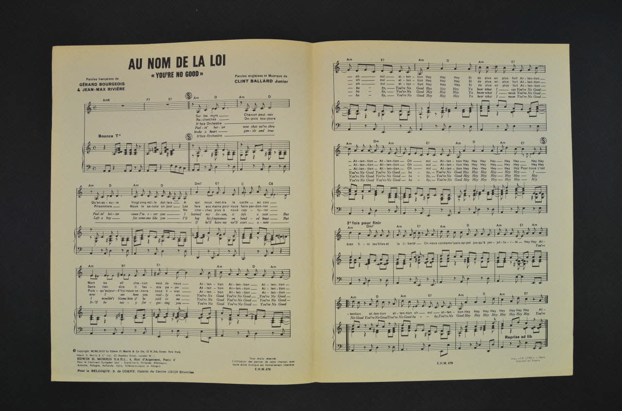 partition de musique, chanson, petit format, Au nom de la loi (You're not good).