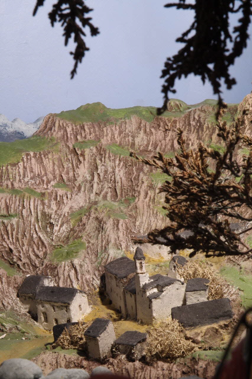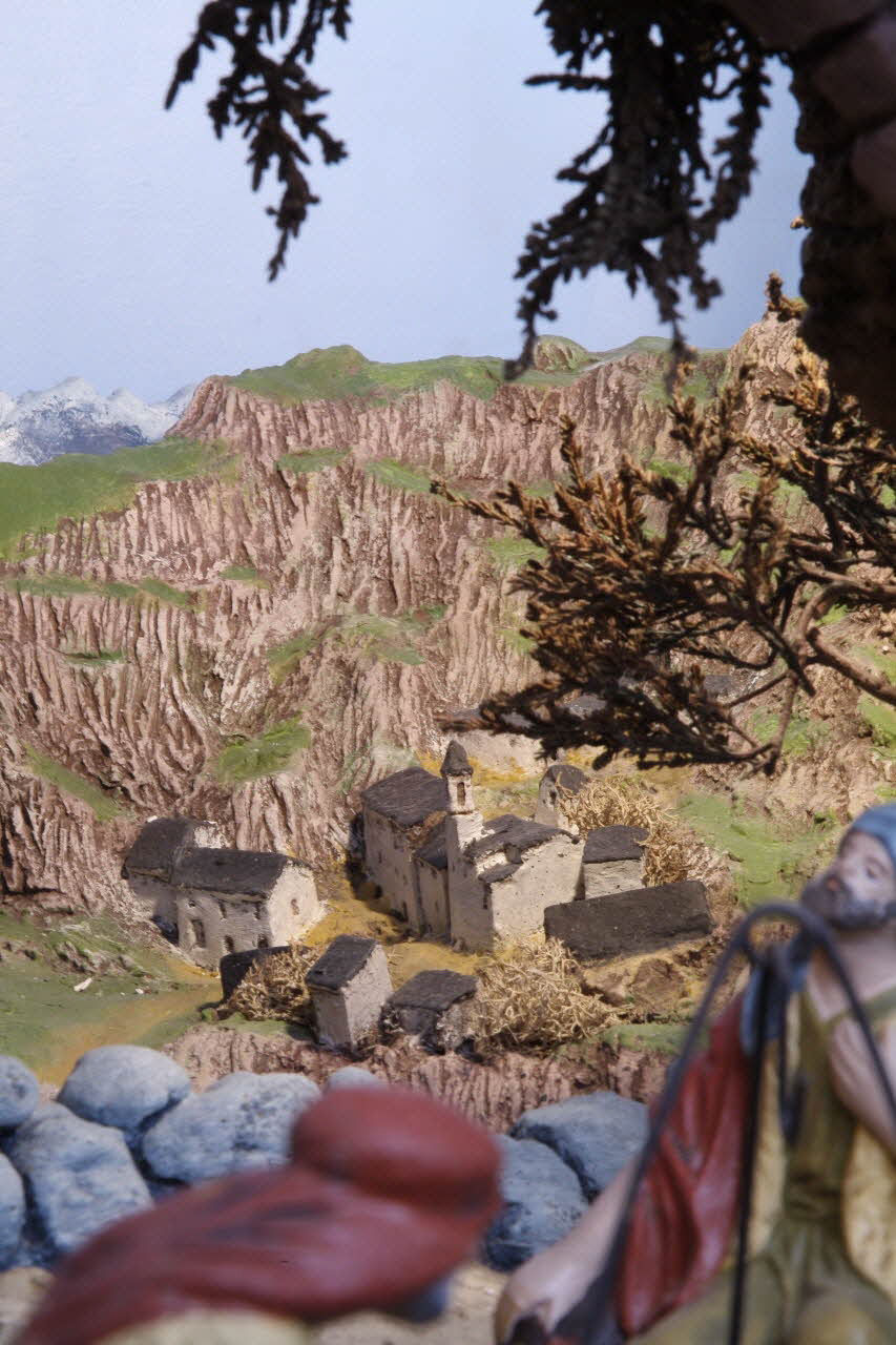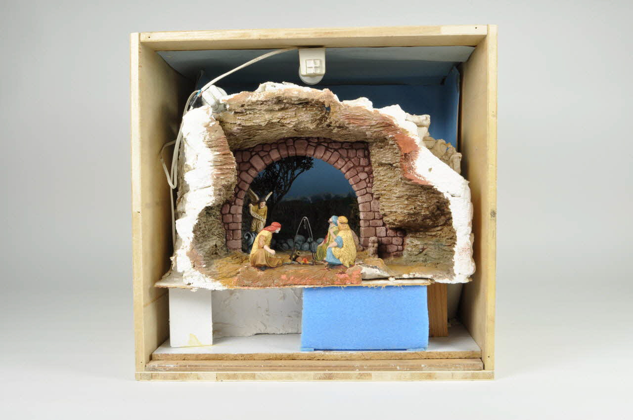 Lieu : Mataro, Barcelone, Catalogne, EspagneDate : 1990Diorama réalisé dans le cadre des cours de "pessebrisme" ( fabrication de crèche) donnés par l'association de "pessebristes" de Mataro aux enfants. Chaque année, les membres des associations de" pessebristes" catalans refont un diorama différent. Chacun choisit une scène particulière du récit biblique, ici l'Annonce aux bergers.