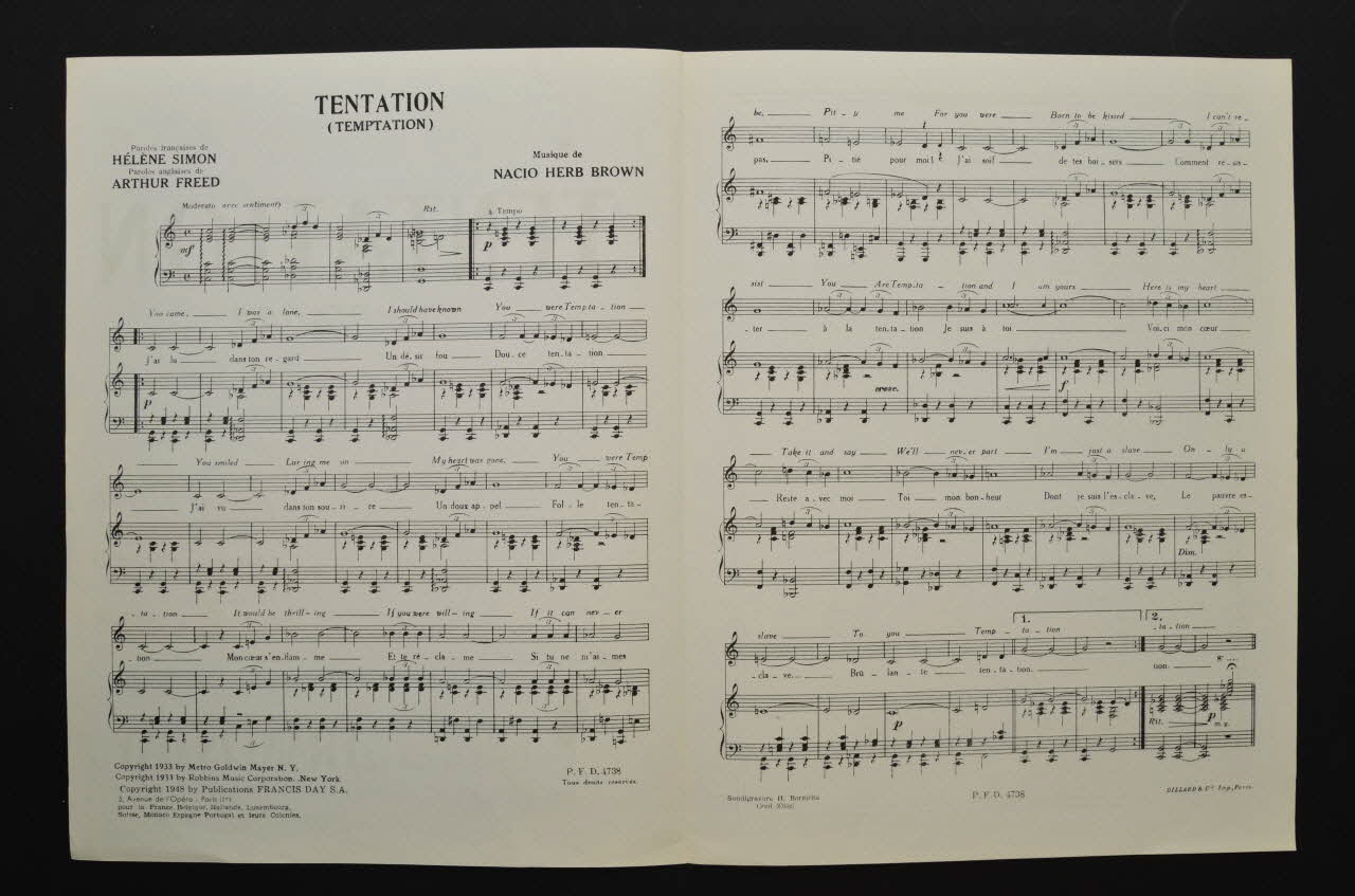 Sur la couverture, portée de musique verticale traversée d'une guirlande de motifs divers : oiseau, étoiles, coeur, fleurette, notes de musique et harpe, accompagnant les inscriptions qui renseignent le titre de la chanson, le nom des auteurs et de l'éditeur. A l'intérieur, partition et paroles de la chanson. Au dos, liste d'autres partitions publiées par l'éditeur.Matériaux et techniques