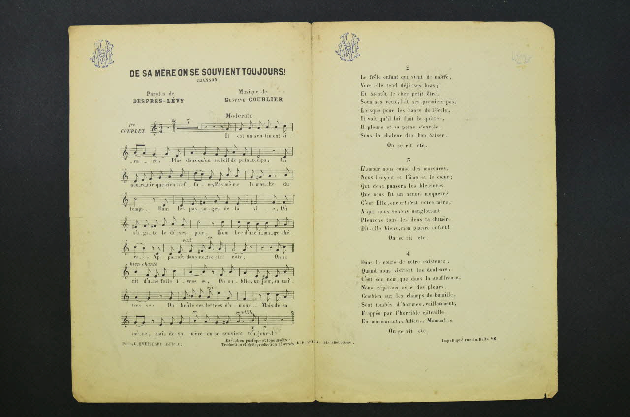 chanson, petit format, partition de musique, De sa mère on se souvient toujours