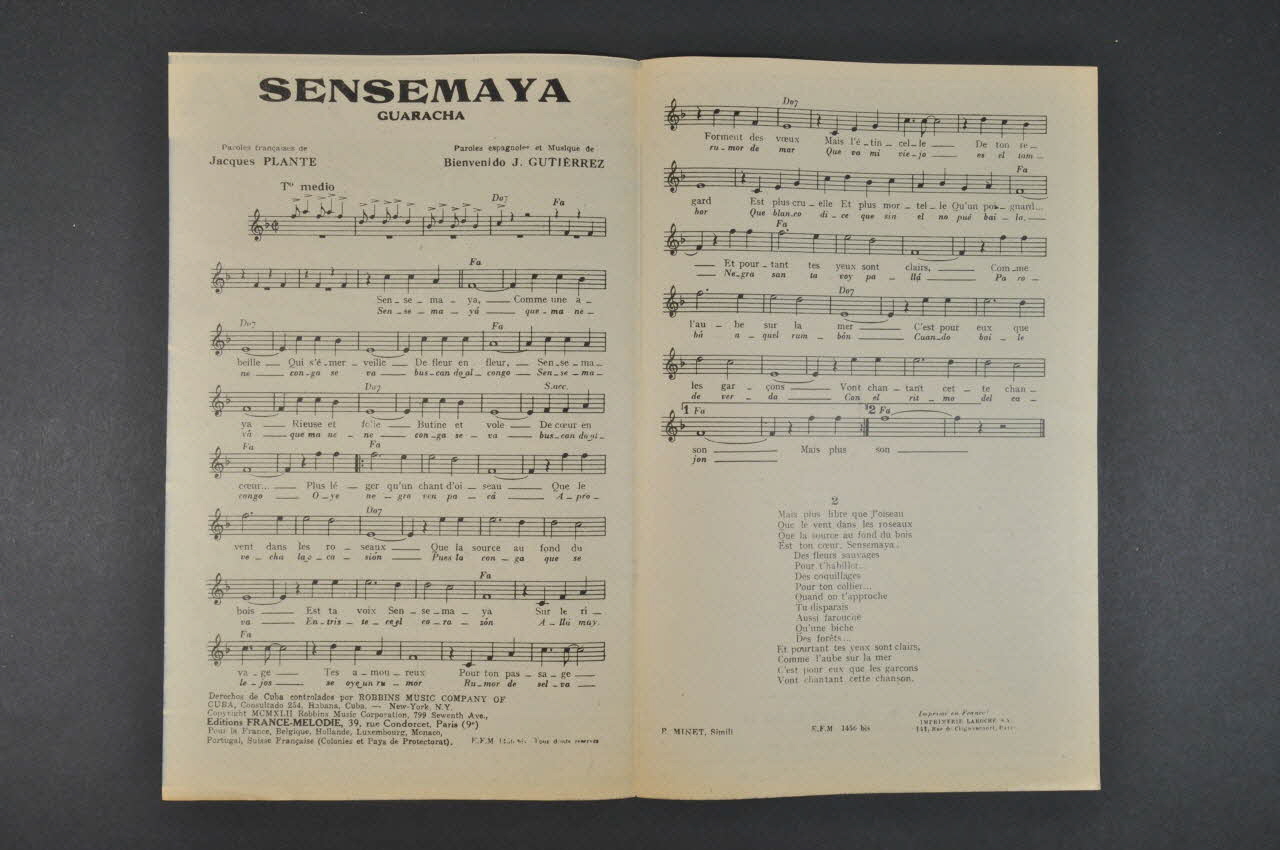 Les inscriptions renseignent le titre de la chanson, le nom des auteurs, de l'artiste et de l'éditeur. A l'intérieur, partitions et paroles de la chanson. Au dos, liste d?autres partitions publiées par l?éditeur.Matériaux et techniques