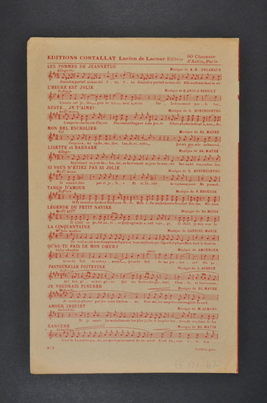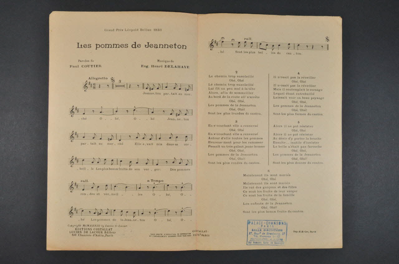 chanson, petit format, partition de musique, Les pommes de Jeanneton