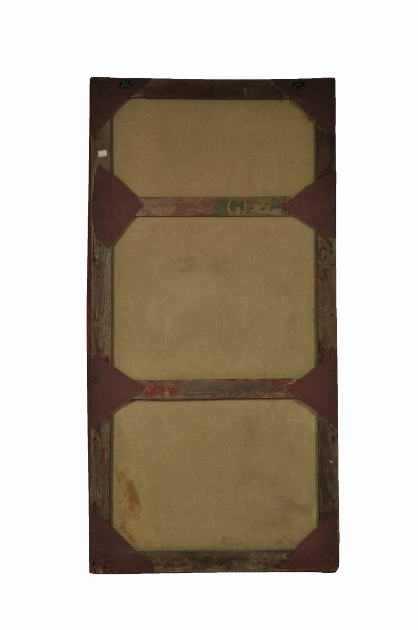 GS (Peint en sombre sur le montant droite du revers, en partie médiane.), reversGF (illisible) (Peint en blanc sur la traverse supérieure)), reversMatériaux et techniques