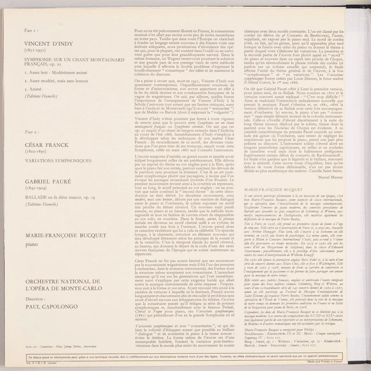 disque 33 tours, Ballade, Variations symphoniques, Symphonie sur un chant montagnard français