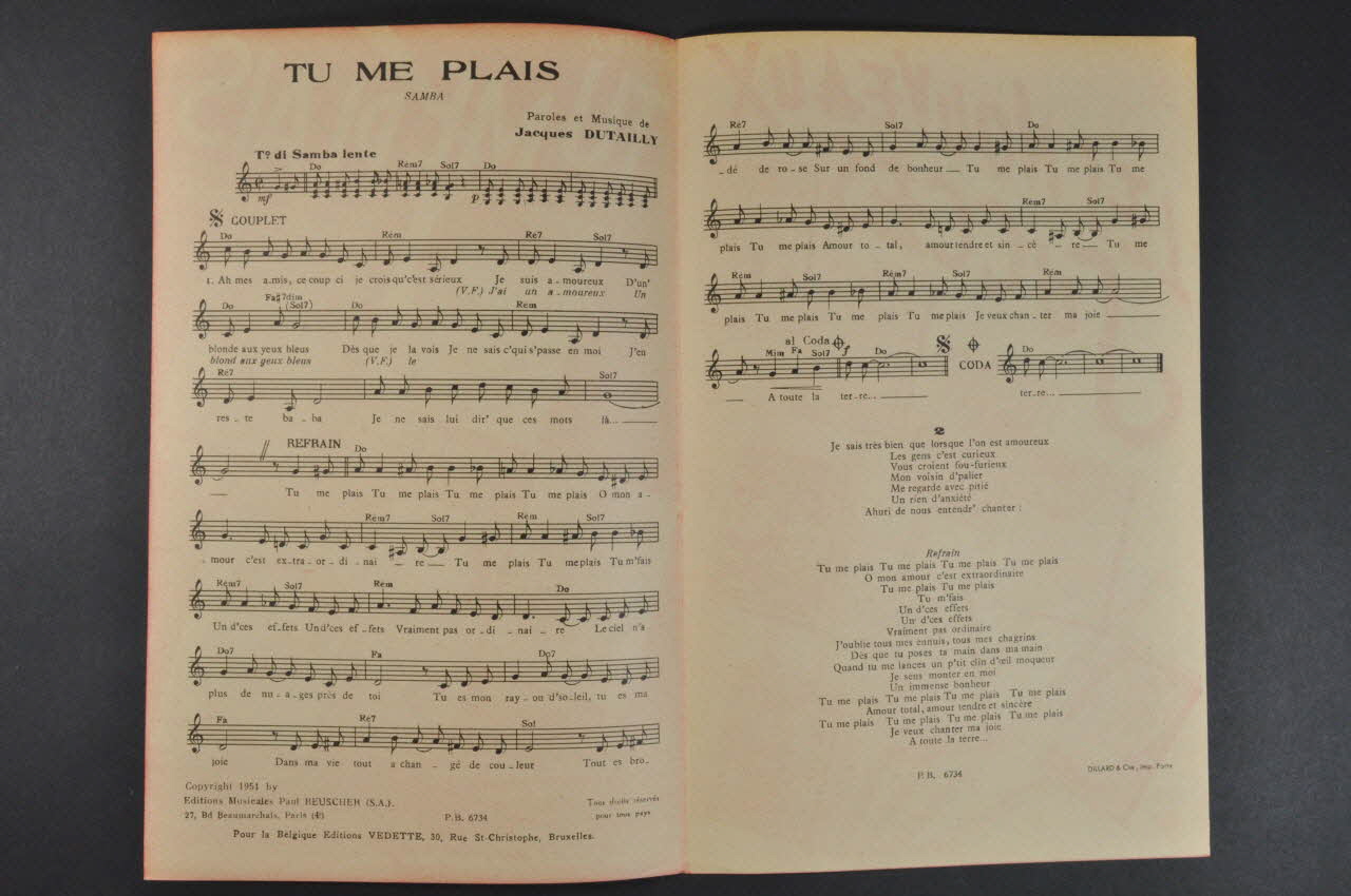 partition de musique, chanson, petit format, Tu me plais