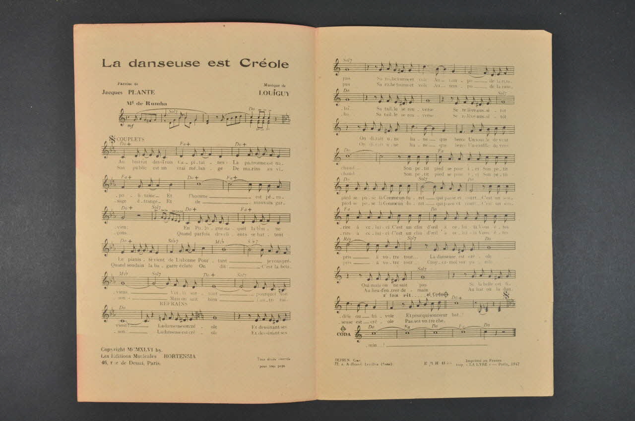 chanson, partition de musique, petit format, La danseuse est créole