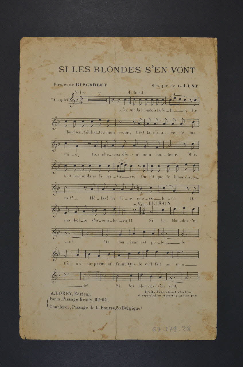 partition de musique, chanson, petit format, Si les blondes s'en vont