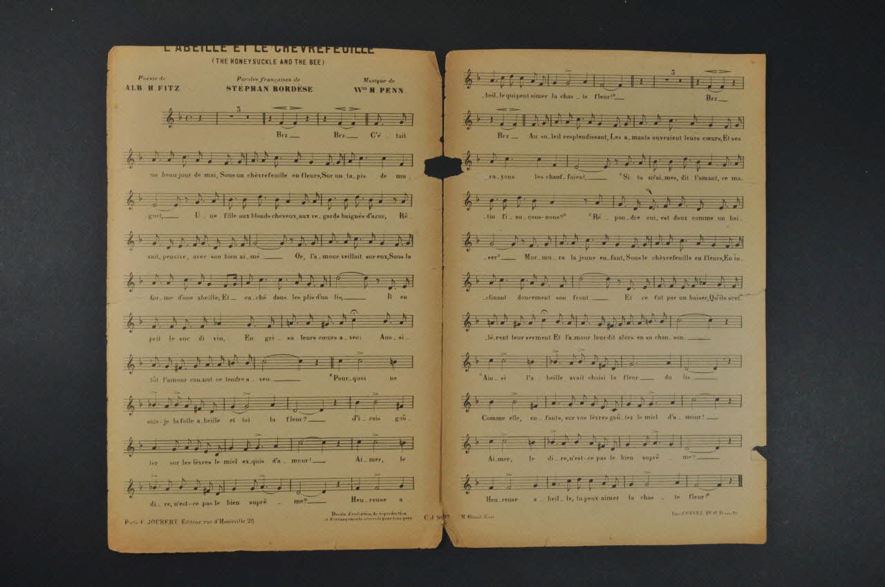 chanson, partition de musique, petit format, L'abeille et le chèvrefeuille