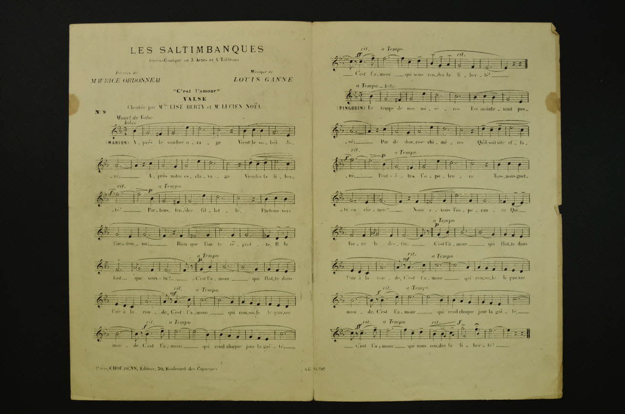 Les inscriptions renseignent le titre de la chanson, le nom des auteurs, de l'artiste et de l'éditeur. A l'intérieur, partitions et paroles de la chanson. Au dos, liste d?autres partitions publiées par l?éditeur.Matériaux et techniques