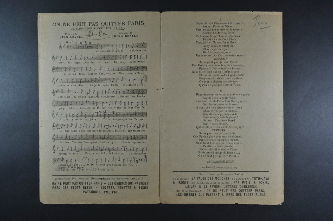 chanson, petit format, partition de musique, On ne peut pas quitter Paris