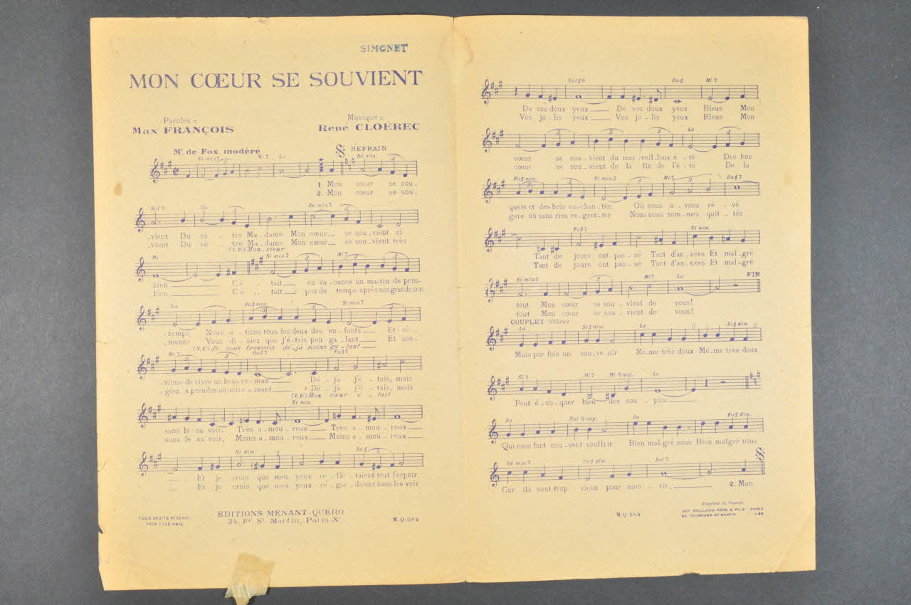 chanson, partition de musique, petit format, Mon coeur se souvient