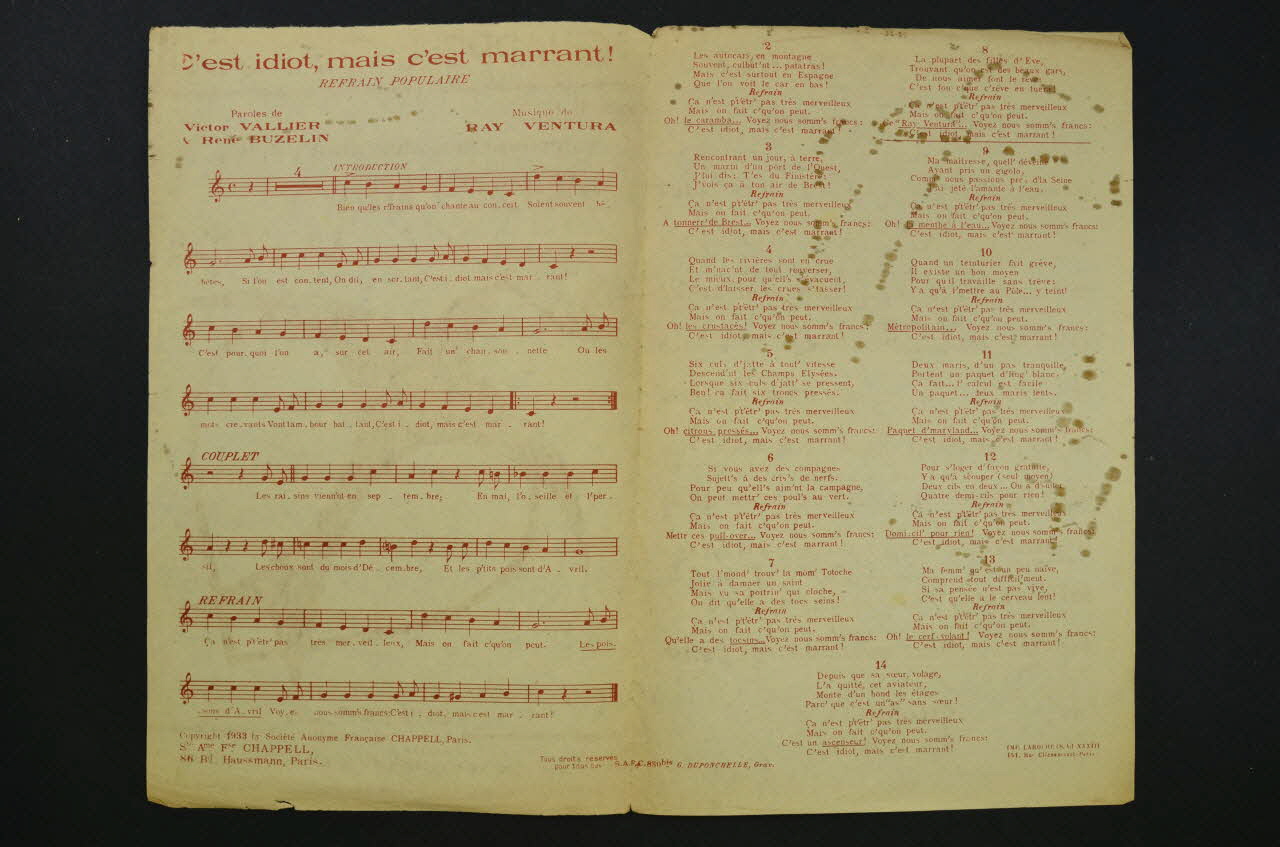 chanson, petit format, partition de musique, Chappell-chanson, C'est idiot mais c'est marrant