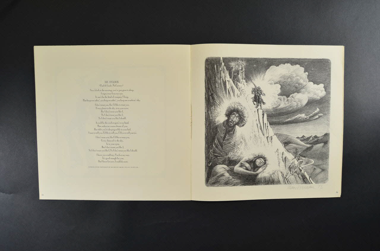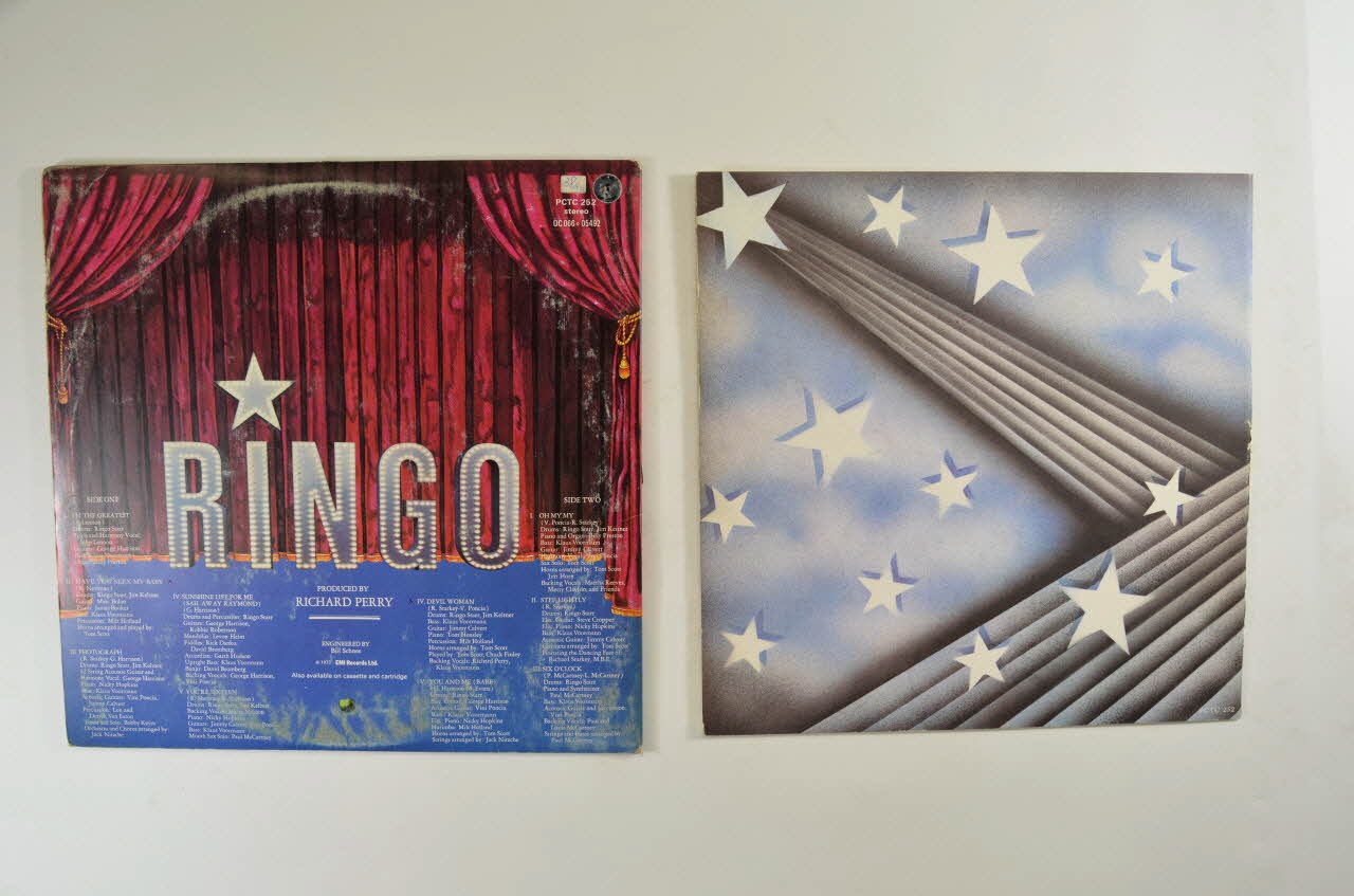 .2 : Pochette en papier cartonné, de forme carrée, pliée et collée. Elle présente le dessin d'une scène, deux rideaux rouges, un public en arrière plan.