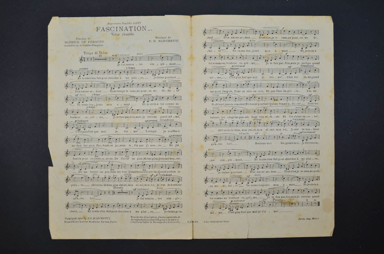 chanson, petit format, partition de musique, Fascination...