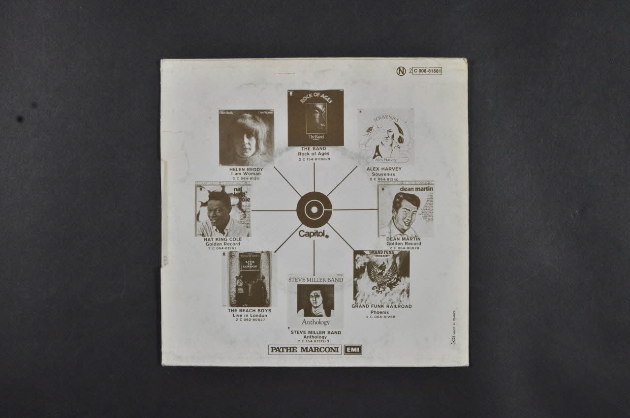 Le recto comporte un portrait noir et blanc du chanteur. Le nom de l'artiste, le titre des chansons sont inscrits en violet dans les parties supérieure et inférieure. Le logo de l'éditeur est dans l'angle inférieur gauche. Le verso contient huit vignettes noir et blanc en cercle présentant d'autres albums de la maison d'édition. Le disque rond et noir comporte une perforation circulaire au centre. Une étiquette rouge contenant le nom du chanteur, le titre des chansons, le logo de l'éditeur ainsi que d'autres inscriptions en noir est collée au centre.Matériaux et techniques