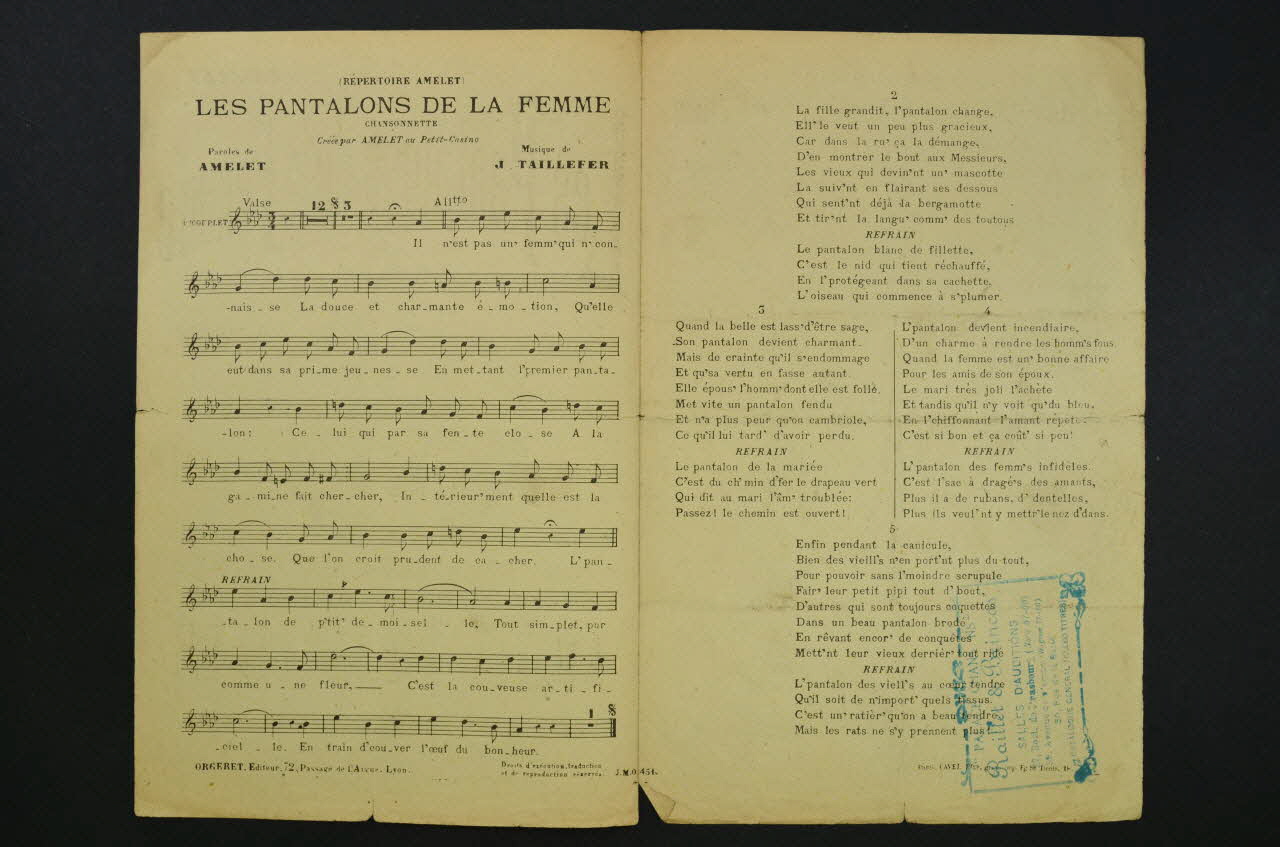 partition de musique, chanson, petit format, Les pantalons de la femme