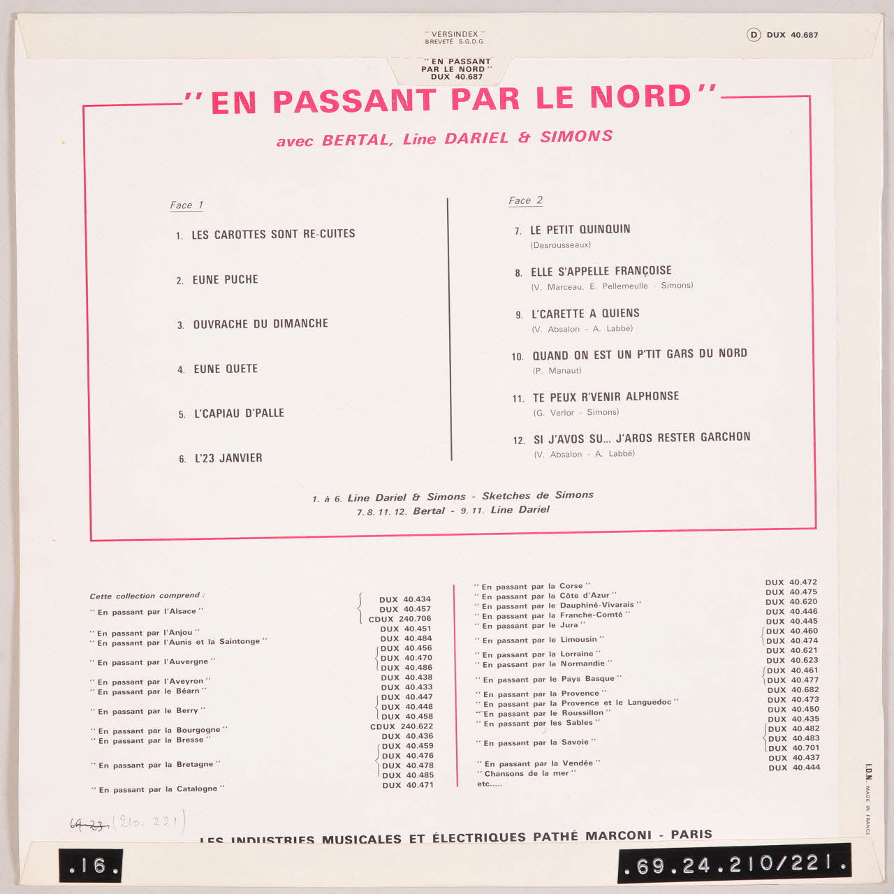 disque 33 tours, En passant par le Nord