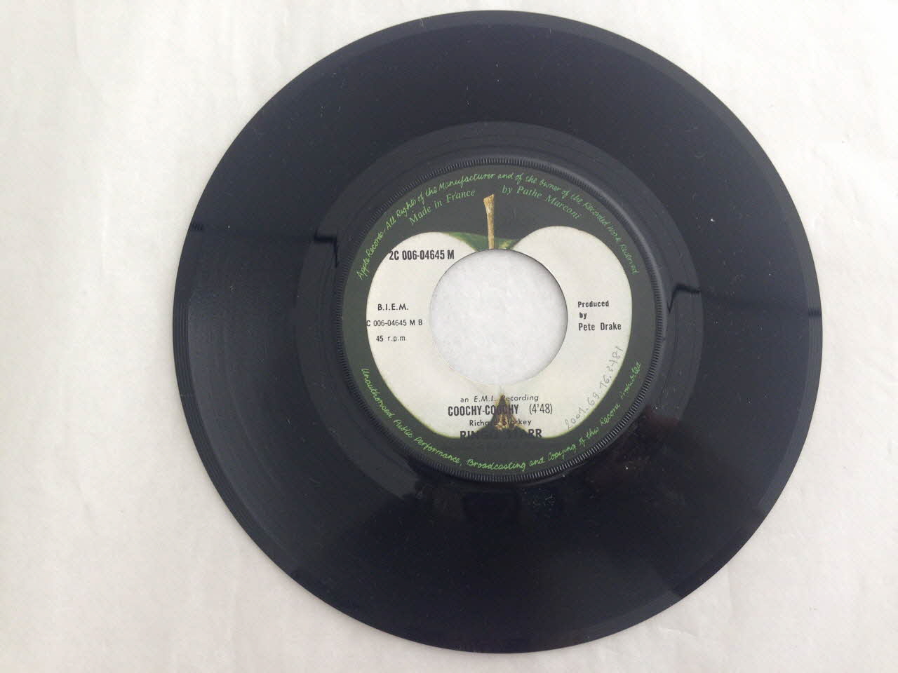 Vinyle 45 tours portant une étiquette centrale décorée la maison d'une demi-pomme de la maison de disque Apple records.Dimensions et poids