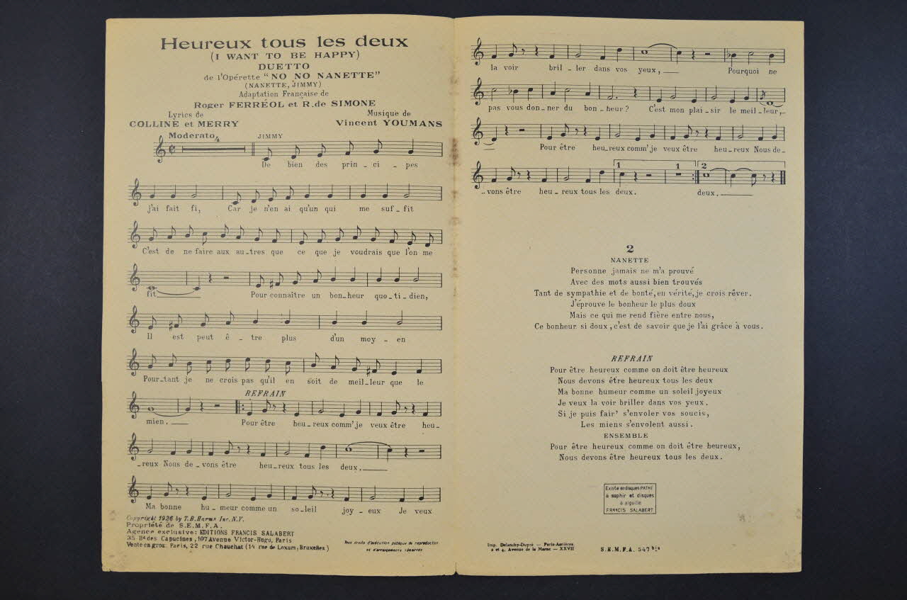 chanson, partition de musique, petit format, Heureux tous les deux (I want to be happy), No, No, Nanette